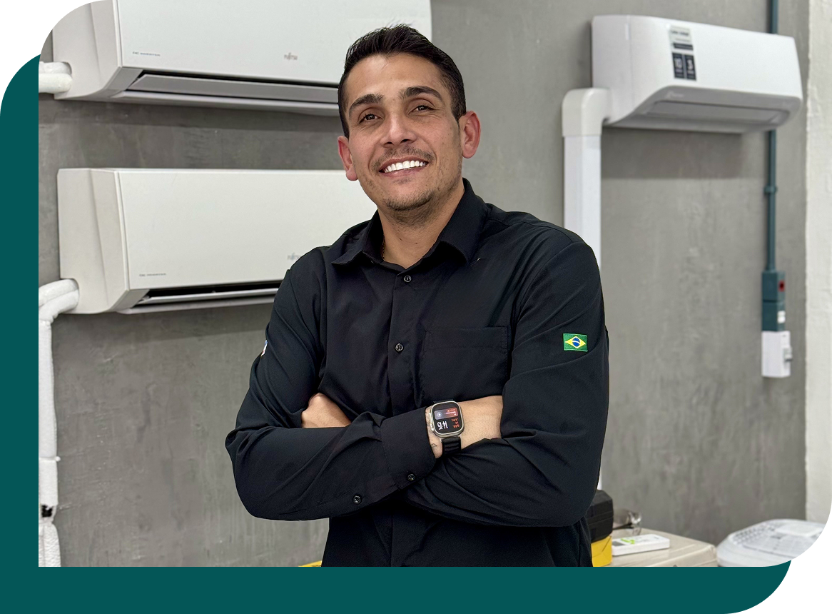 Especialista em instalação, manutenção e limpeza de ar-condicionado, ele garante eficiência, segurança e máxima durabilidade para seu equipamento.